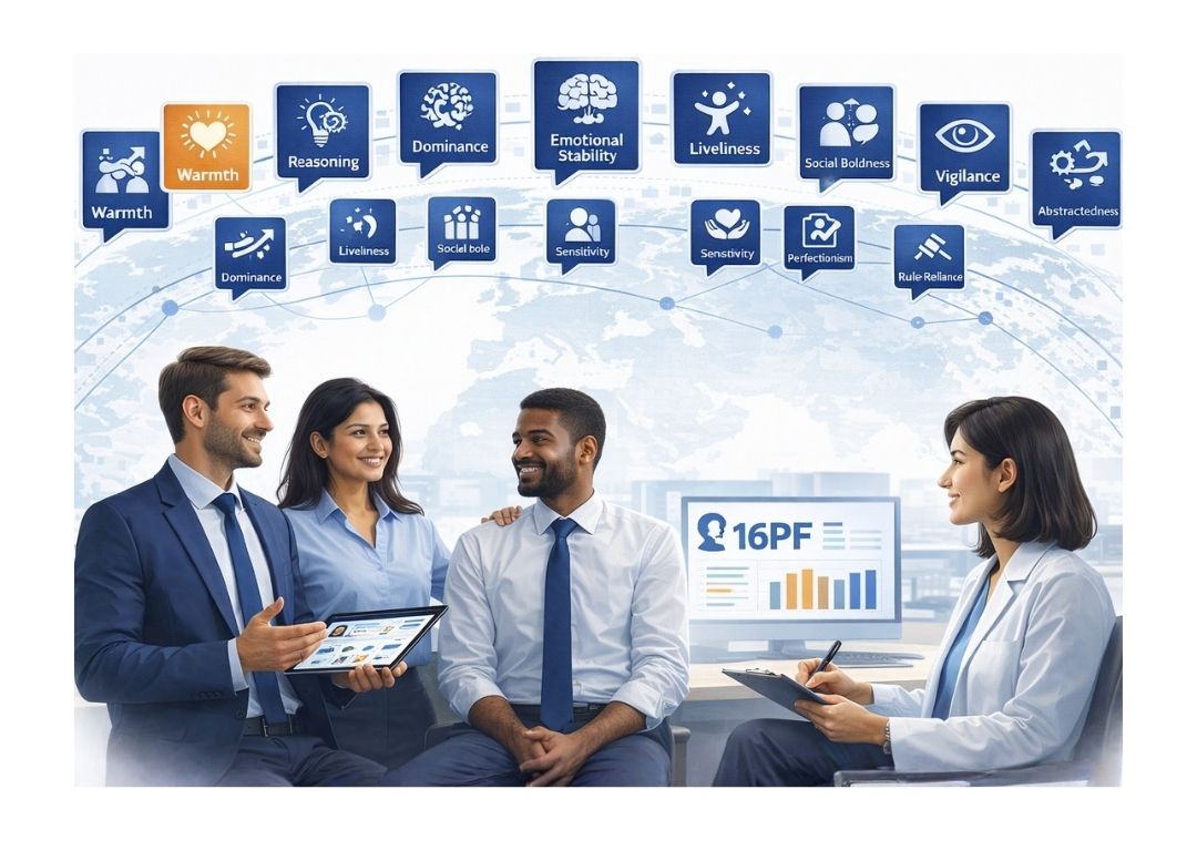 The 16 Personality Factor Questionnaire (16PF) measures sixteen fundamental personality traits that shape how individuals think, interact, and perform at work. Widely used by psychologists and organizations worldwide, the assessment provides powerful insights that support leadership development, career planning, and behavioural growth.